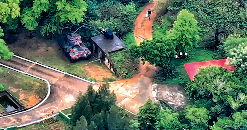 圖- 再有大陸無人機在8日飛越金門二膽島空拍,島上軍事部署及裝備一覽無遺。(拍攝圖片)