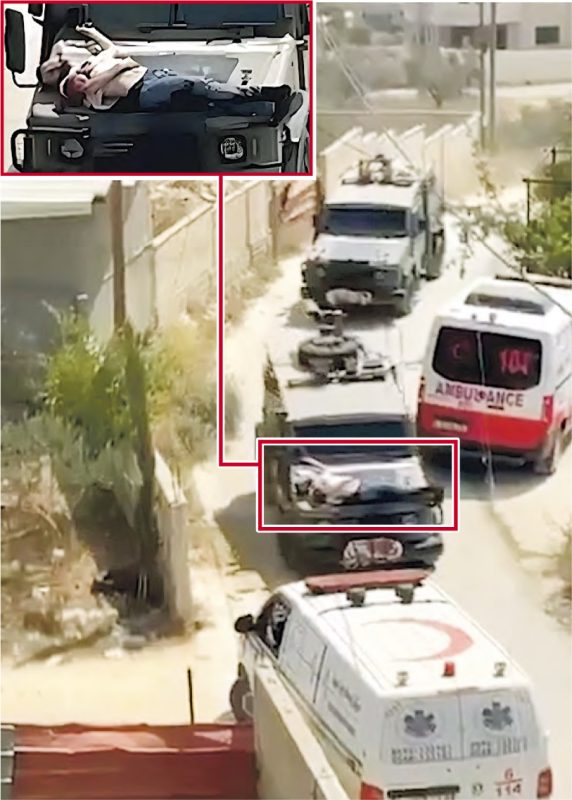 半島電視台引述巴勒斯坦救護車司機穆斯塔法表示,看見受傷男子一條手臂被綁在車頭擋風玻璃上,另一隻手掩蓋腹部。他們請求以軍把男子交給他們,但以軍拒絕,逕自駕車駛過。
