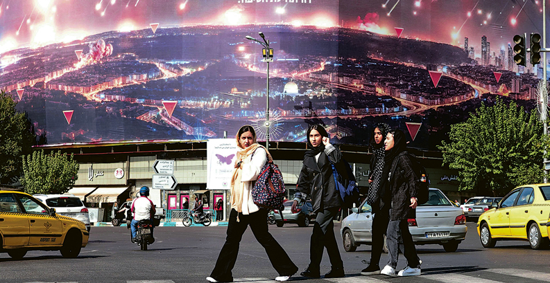 圖 – 在以色列完成報復攻擊下,伊朗首都德黑蘭市况平靜,圖中巨型電子屏幕展示支持黎巴嫩真主黨的反以色列文宣。伊朗當局強調空襲造成的破壞「有限」,惟強硬保守派主張政府迅速反擊。(法新社)
