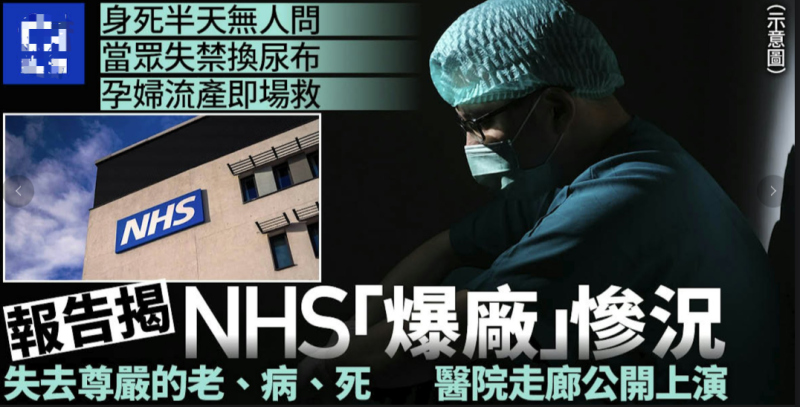 報告揭英國NHS不堪重負 曝患者在走廊換尿布、接受治療或等死