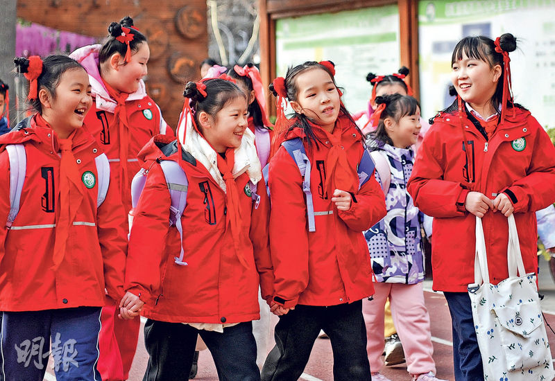 圖 – 電影《哪吒2》熱潮帶動周邊商品暢銷,河北省石家莊市育才小學的小學生打扮成「哪吒」模樣返校,該校將哪吒元素融入開學第一課,引導學生感受中華文化魅力。