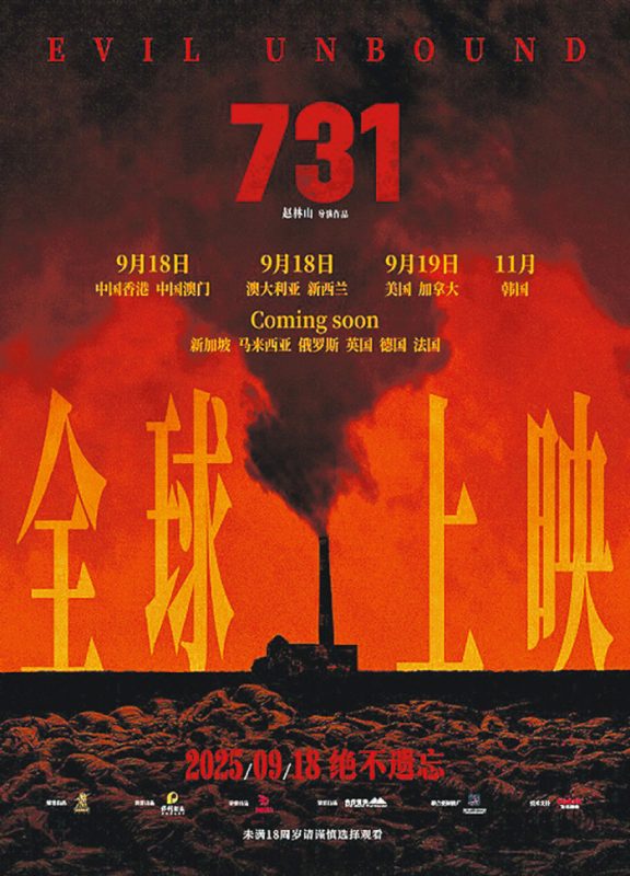 央視報道稱,《731》即將全球多地上映,「讓血色記憶成為全人類的警示。讓和平的信念在全球回響!」該片是紀念抗日戰爭勝利80周年系列電影之一,此前以南京大屠殺為題材的電影《南京照相館》票房創下佳績。
