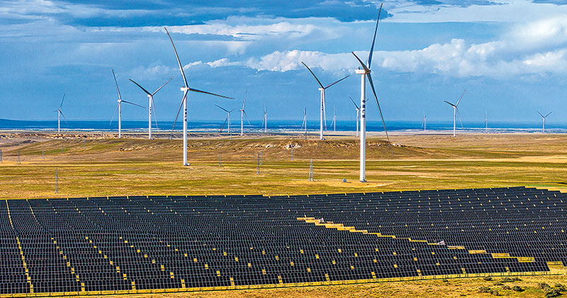 圖為新疆阿勒泰地區吉木乃縣的風力發電場。中國新增的再生能源發電量領先全球,反之歐美等發達國家依賴化石燃料發電不減反增。(新華社