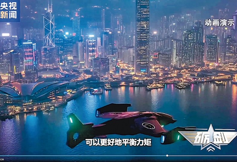 中国央視國防軍事頻道發布影片,介紹官方近年構建的航空主題科幻IP「南天門計劃」。其中「南天門計劃」新成員,新亮相的「紫火」通用垂直起降平台,更有以香港夜空為背景的飛行畫面。