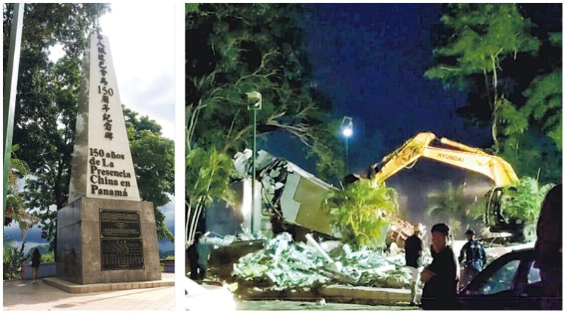 圖 – 巴拿馬阿賴漢市政府27日深夜以「安全隱患」為由,將當地象徵中巴友誼的「華人抵巴150周年紀念碑」(左圖)拆除。中方提出嚴正交涉並要求修復。(網上圖片)