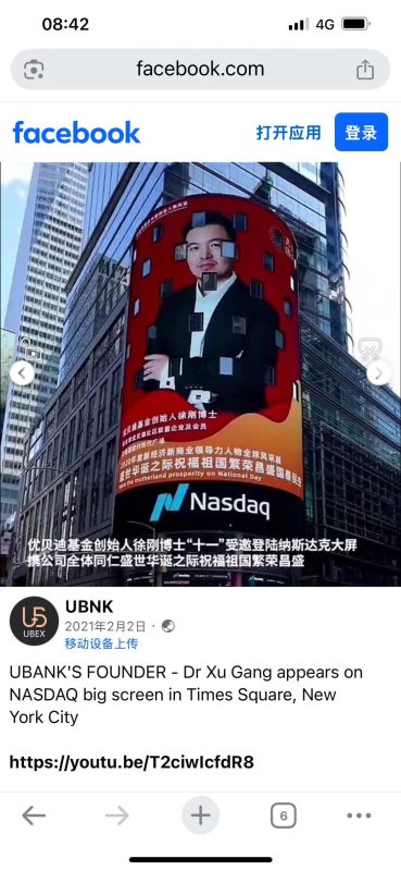 图为2021年徐刚在中国诈骗期间的宣传广告