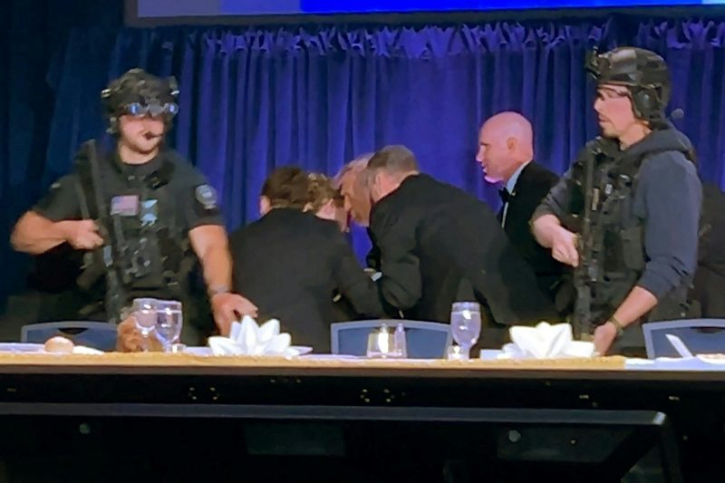 图:4月25日在華盛頓舉行的美國白宮記者晚宴發生槍擊事件,總統特朗普(Donald Trump)急忙撤離(Reuters)
