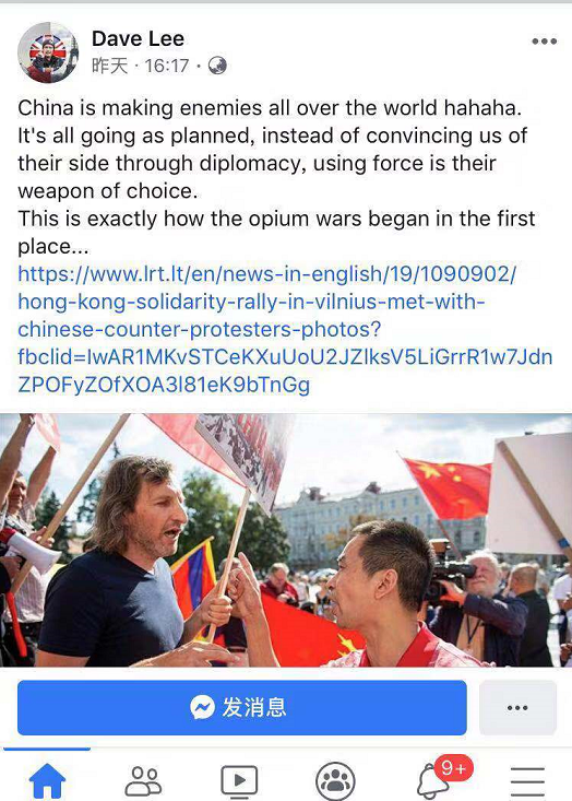 网友截屏爆料:这个“土澳”天天反华 网友向讨论区爆料,指这个Dave Lee,天天发负面新闻抹黑中国,在网上遭到网友指责。 据网友介绍,Dave Lee在Facebook上,是澳洲的公众人物。靠反华言论著称并吸引关注。 编者注:澳洲火辣讨论区正式设立【网友爆料】一栏,欢迎大家踊跃投稿。联系可扫描讨论区二维码进入群组投稿。