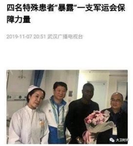 蕭十一狼点评:由于武汉疫情是在12月爆发,联想到潜伏期,病源极有可能是11月军运会的这5位外籍运动员。本次处理疫情,武汉市金银潭医院是主力,金银潭医院应该知道真相。但是否也可说,金银潭医院在治疗这5位外籍运动员时候,并没100%有效控制这个传染病,哪怕是99%,也导致了这次新冠肺炎的爆发。可能由于百密一疏,令官方媒体绝少提到《长江日报》或《武汉广播电视台》的当年的报道?以免追责金银潭医院?媒体眼中的这几位“特殊患者”,究竟怎么个特殊法?是国籍特殊?还是传染病特殊?
