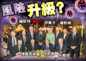 巴西总统博尔索纳罗及其代表团、美国总统特朗普及家人上周六(7日)曾在美国佛罗里达州的海湖庄园别墅会面。与会的巴西政府新闻官沃恩加藤及美国迈阿密市长苏亚雷斯确诊新冠肺炎。博尔索纳罗的随团律师库法(Karina Kufa)及巴西驻美国大使福斯特(Nestor Forster)周五(13日)亦宣布确诊,成为会面的第3及第4名中招人士。