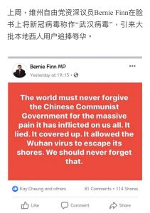 作为同僚,还同在维州,自由党资深议员Bernie Finn的言论,廖议员不会一无所知吧?这么多天,也没见廖议员为此发声。请问,廖议员们,你们敢制止主流媒体和自由党的种族主义蔓延吗?敢对主流媒体和当政的政客开炮吗?