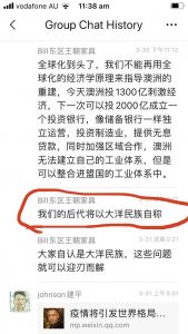 爆料:有自由党华人称脱离中华民族改称“大洋民族” 网友爆料指,墨尔本自由党党员马姓人士(曾自称自由党党代表),要脱离中华民族,自称“大洋民族”。 网友在微信群反问,归顺洋人后,黄皮肤是否能洗白? 网友质疑:该党代表的声明是否代表自由党华人立场? 声明:所有信息资讯,均来自微信公共平台,并非本网站原创,本网站(包括其他媒体)有权采纳各种公共平台所有的公开信息。截屏内容不代表本网站立场。 【天下火辣讨论区】特此声明。