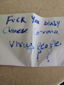 维州华人家里信箱收到种族歧视纸条(4.17截屏)